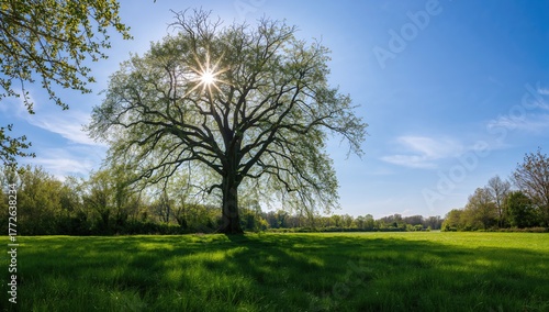 © AkuAku, Obraz premium Clear summer sky and pristine air over a beautiful natural landscape with trees