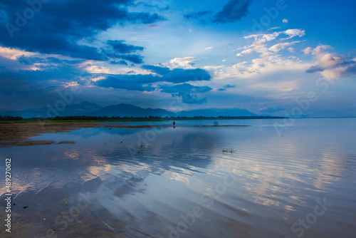 © AbrilGomezPhoto, Obraz premium Clear sunrise on a water mirror cloudy