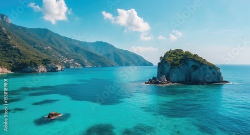 © Lasvu, Fototapeta premium Clear Turquoise Blue Sea At Bay with Empty Copy Space For Text