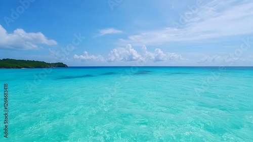 © artzone, Naklejka premium Clear Turquoise Ocean Water Under a Bright Blue Sky
