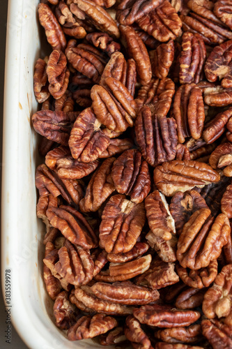 © Viktoria, Obraz premium cleared pecan kernels close-up on the table