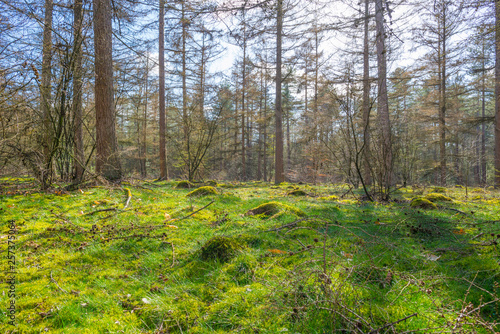 © Naj, Fototapeta premium Clearing in a forest below a blue cloudy sky in winter