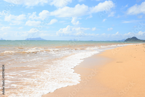 Obraz premium clearly sea water wave beach with blue sky on relax and vacation time