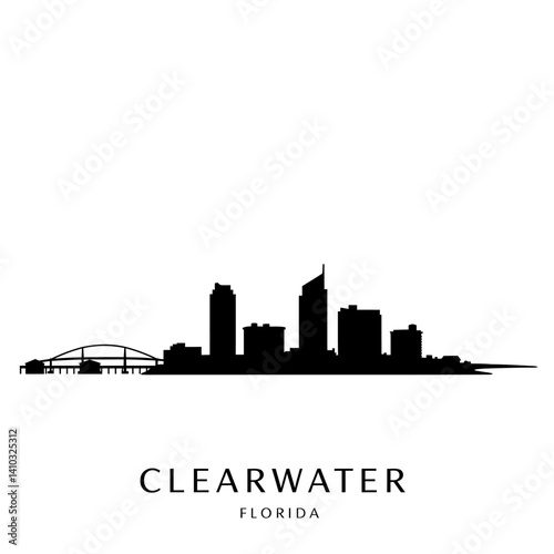 © godsfavoritearts, Fototapeta premium Clearwater Florida Skyline Black Silhouette.