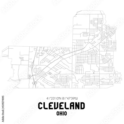 Fototapeta premium Cleveland Ohio. US street map with black and white lines.