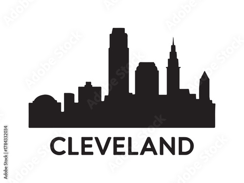 Naklejka premium Cleveland Skyline Silhouette – Vector Cityscape Logo Design. Black and White...