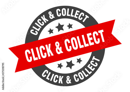 © Aquir, Obraz premium click & collect sign. round ribbon sticker. isolated tag