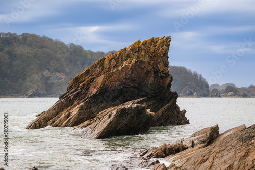 © Armands photography, Naklejka premium Cliff in the ocean. Ocean coast before the storm, cloudy sky