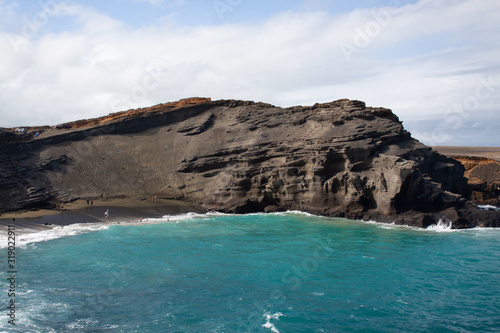 Fototapeta premium cliff on ocean by green sand beach