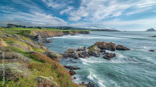 © fanjianhua, Obraz premium Cliffs by the seaside, grasslands