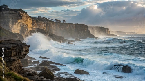 © Shahin67, Naklejka premium Cliffside landscape with crashing ocean waves