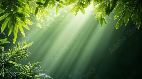 © patpongstock, Obraz premium climate change global warming reforestation concept. Lush green foliage with sunlight streaming through.