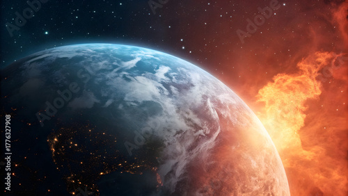 © imagepro, Fototapeta premium Climate Dichotomy Globe: Ice and Fire