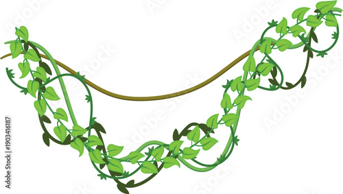 Fototapeta premium Climbing liana. Green vines hanging cartoon icon