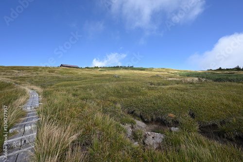 Naklejka premium Climbing Mount Naeba, Niigata, Japan