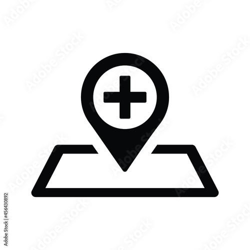 Obraz premium Clinic, location, navigation icon. Black vector graphics.