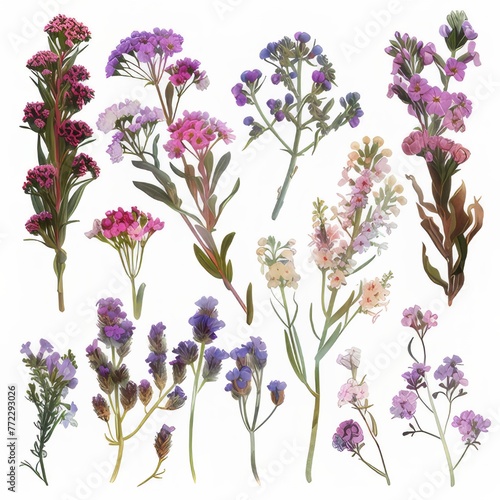 © wpw, Obraz premium Clip art illustration with various types of Statice on a white background.