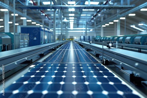 Fototapeta premium Clipart illustration of photovoltaic cells being manufactured, showcasing the...