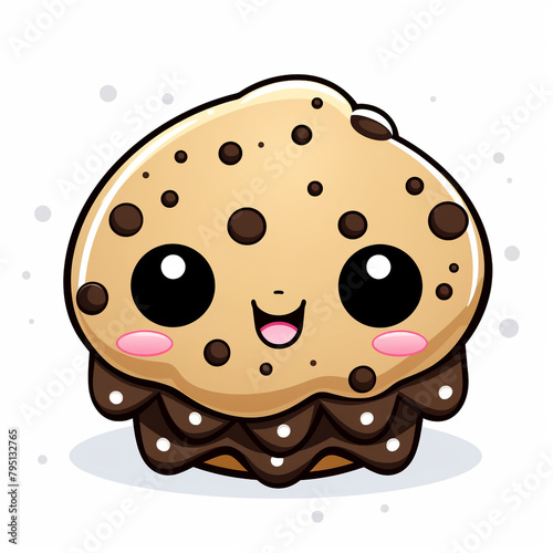 Fototapeta premium clipart kawaii, choc chip cookie, whip cream and sprinkles, soft pastel colour scheme, white background сreated with Generative Ai