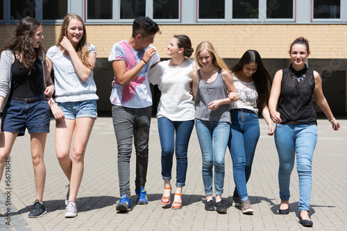 © Christian Schwier, Fototapeta premium Clique geht über den Schulhof