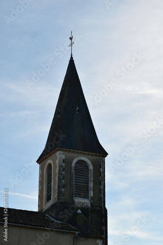 Fototapeta premium Clocher de l'église du village de Laneplaa dans le Béarn dans les Pyrénées Atlantiques