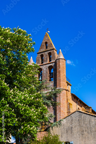 © Ldgfr Photos, Fototapeta premium Clocher à l’architecture caractéristique en briques rouges de l’Eglise Saint-Martin de Nailloux, dans le Lauragais, près de Toulouse
