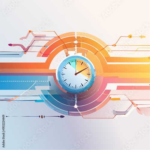 © AhmadFarid, Fototapeta premium Clock and abstract futuristic technology background with digital circuit elements