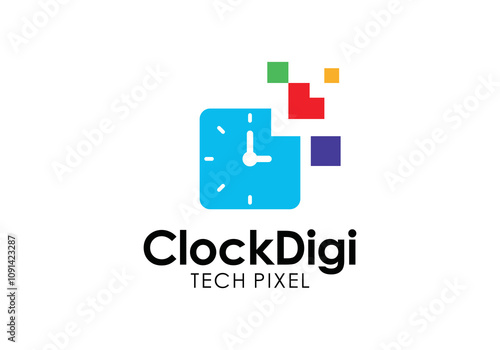 © nubikor, Obraz premium clock pixel digital creative logo design vector