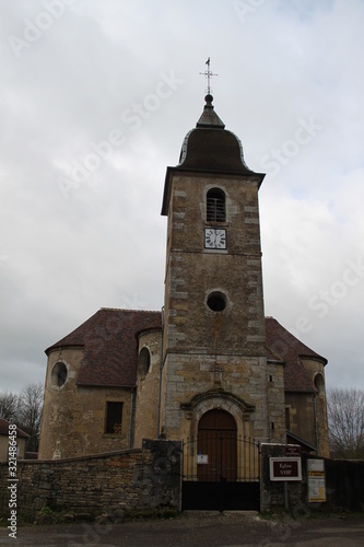© Estelle R, Fototapeta premium Clock tower church in a small village of Burgundy