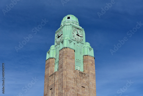 Fototapeta premium Clock Tower, Helsinki, Railway Station, Finland