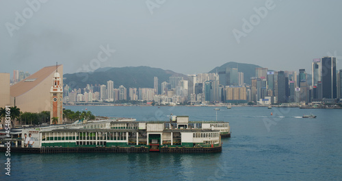 © leungchopan, Naklejka premium Clock tower in Hong Kong city