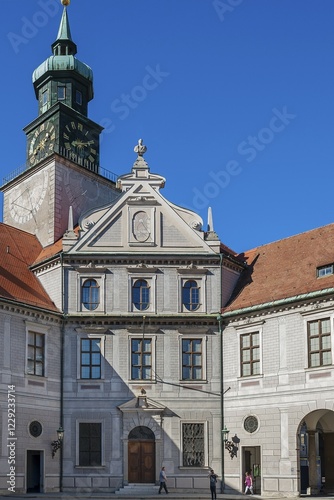 Obraz premium Clock Tower in the fountain courtyard of the residence, Munich, Upper...
