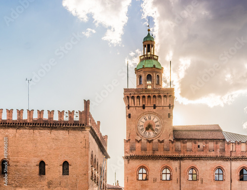 Fototapeta premium Clock tower of the town hall in Bologna in Italy