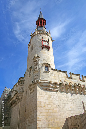 Fototapeta premium Clock tower on the Town Hall in Old Town downtown area in La Rochelle,...