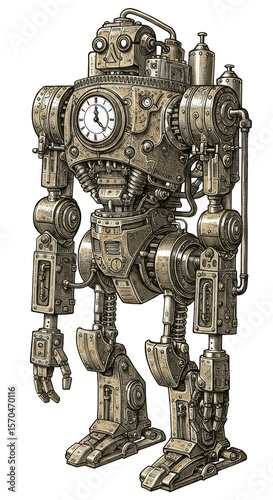 Naklejka premium Clockwork Steampunk Robot Machine Retro Vintage Technology Illustration
