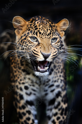 Naklejka premium Close angry leopard portrait