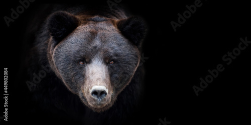 Fototapeta premium Close bear portrait on black background