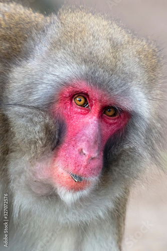 Naklejka premium close image of Japanese Macaque in the forest