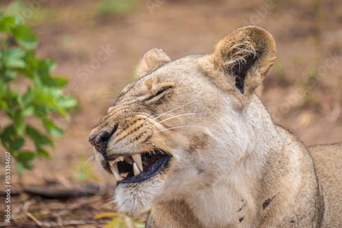 Fototapeta premium Close interaction with a playful lioness, Chobe riverfront area, Serondela,...