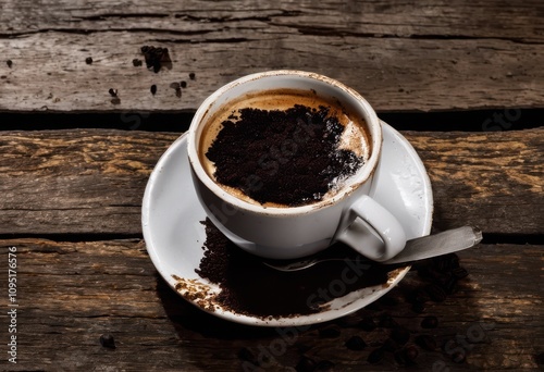 Fototapeta premium close neglected coffee cup set unadorned table inviting exploration everyday...