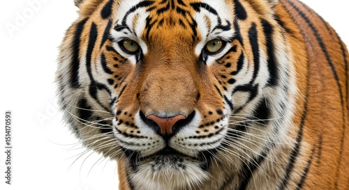 Naklejka premium Close Portrait of Striped Orange and Black Tiger Feline Isolated