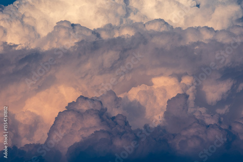 © MWolf Images, Fototapeta premium Close-up abstract image of big fluffy clouds in the sky with blue and orange hues and texture