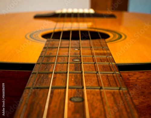 © Mung, Fototapeta premium Close-up acoustic guitar neck