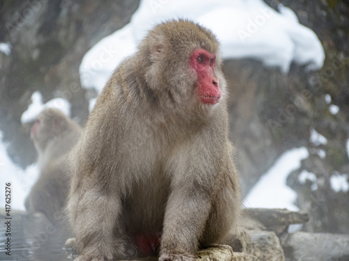 Naklejka premium close up adult Japanese macaque snow monkey 2