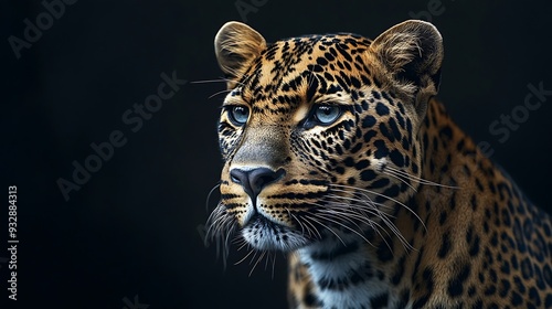 © The Little Hut, Fototapeta premium Close up adult leopard portrait Animal on dark background : Generative AI