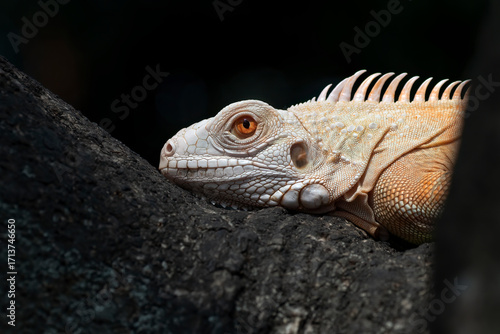 Fototapeta premium Close up an albino iguana on a tree