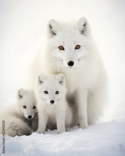 © Chiara Battaglia/imageBROKER, Fototapeta premium Close-up, arctic fox with young in deep snowy arctic winter landscape, AI generated