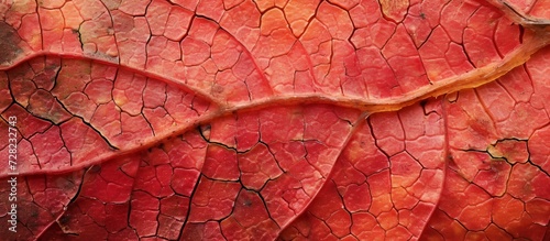 Fototapeta premium Close-Up Autumn Red Leaf Texture: A Vibrant Close-Up of a Red Autumn Leaf Enhancing its Unique Texture