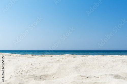 © alexytrener, Fototapeta premium Close up background of blurred sand beach and sea waves with bokeh lights