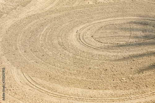 © NVB Stocker, Naklejka premium close up background of the rough sand field texture with many circle lines in the golf course